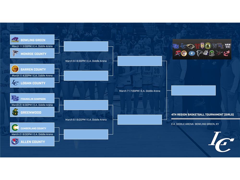 The Logan County Lady Cougars (17-15) will open regional play in Sunday’s second afternoon game at approximately 4:30. Their opponent will be regional favorite Barren County (29-2) in Diddle Arena at WKU. They are in the same bracket with Bowling Green (17-14) and Monroe County (20-9). WRUS will broadcast the game.