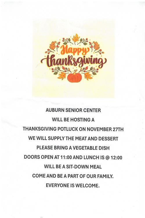 Auburn Senior Citizens Thanksgiving Potluck offered