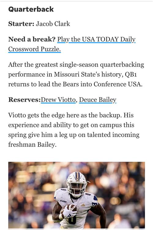 • WKU (3-1 overall, 1-0 CUSA) at Missouri State (2-2 overall, 0-0 CUSA)
