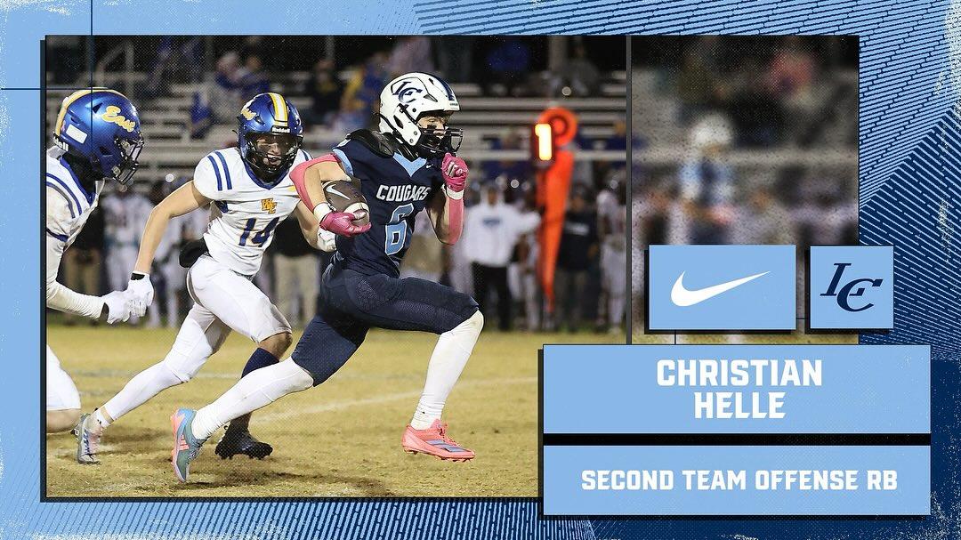 Helle finished with 164 yards and 2 touchdowns on 15 carries. Rogers added 66 yards on 6 totes. Between them, they totaled all but one Cougar ground yard.