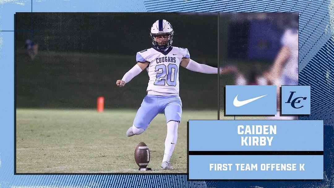 He wasn’t needed in the seventh category. His fellow first-team All-SKY big school honoree Caiden Kirby doesn’t need any help on this one. He went five for five kicking extra points against the Knights, which makes him 25 for 25 over the last five games and 43 for 44 on the season.