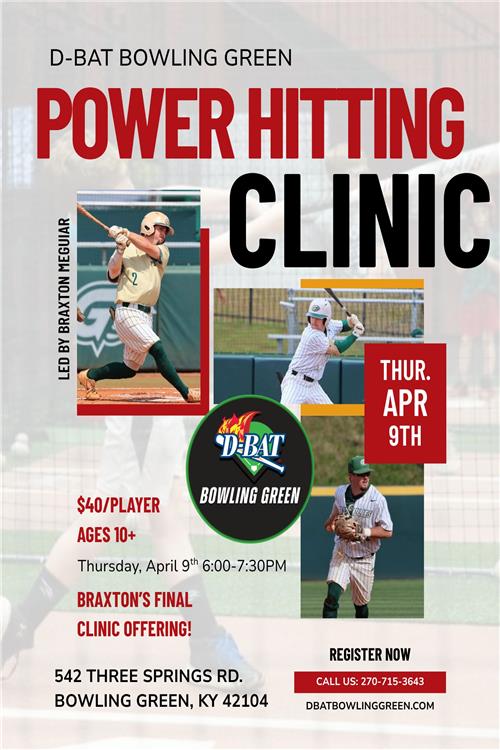 Braxton will lead one more baseball clinic at D-Bat Bowling Green before leavin for Michigan. It will be a Power-hitting Clinic next Thursday. See the accompanying graphic for details.