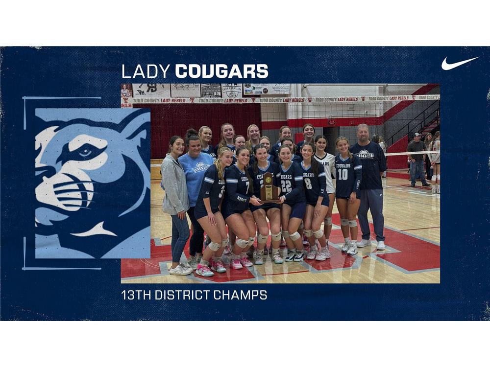 For the 23rd consecutive season, the Logan County Lady Cougars are champions of the 13th District Volleyball Tournament. But unlike the other 22, they came close to losing the championship match. They had not lost a set in those first 22 tournaments, but Monday they fell behind homestanding Todd Central two sets to zero. Coach Steven Lyne’s team won the final three sets 25-18. 25-20, and 16-14 in what was essentially overtime. Not only does the championship streak continue, but it has now been 7,783 days since Logan County lost a district match—regular season or postseason. The regional tournament will be played at LCHS.
