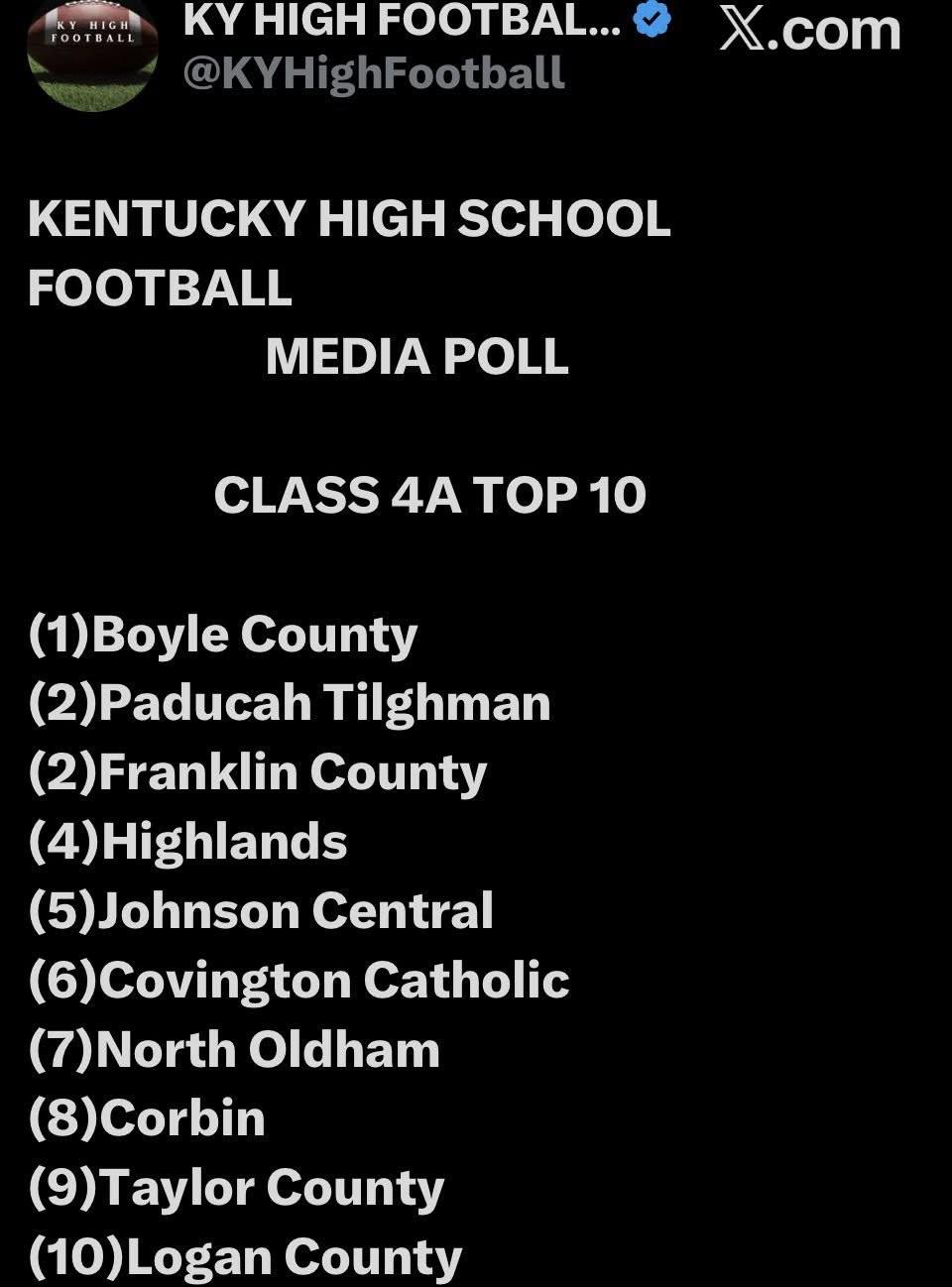 Defending Class 4A state champion Paducah Tilghman had to withstand a serious challenge from visiting district opponent Logan County Friday before winning 35-27. The difference came in the second quarter when Coach Sean Thompson’s Blue Tornado outscored the Cougars 21-14. It was the first loss of the season for the Cougars. Both teams are now 6-1 overall.