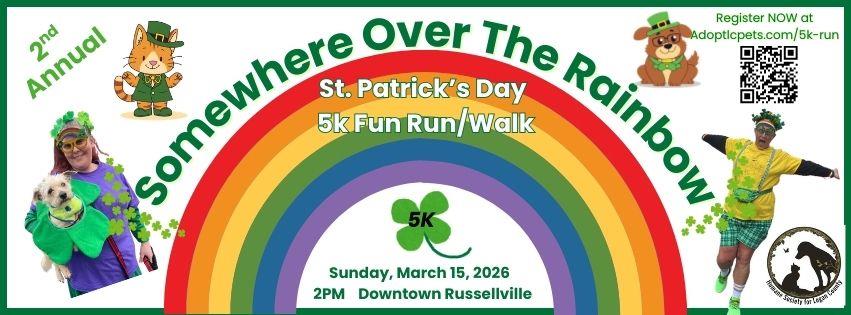 The Second Annual St. Patrick’s Day 5K Fun Run/Walk is being sponsored by the Humane Society of Logan County. It will begin at 2 p.m. at the corner of Fifth and Main in Russellville. Participants will “get a snazzy T-shirt, a medal, snacks and goodies and a whole lotta fun for all! Run in honor of those who have crossed the Rainbow Bridge. Make sure to dress in your St. Patty's best!” The fee/donation is $35 for adults and $25 for children.