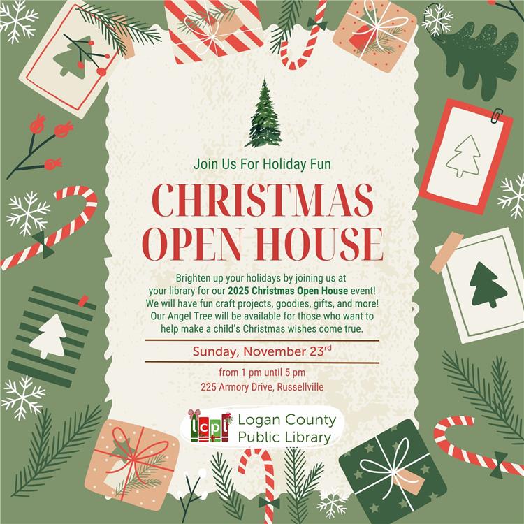 The Logan County Public Library is usually closed on Sunday afternoons, but not next week. “Join us for Holiday Fun Sunday, Nov. 23, from 1-5 p.m. at your library!” staff says. “Our 2025 Christmas Open House event will have fun craft projects, goodies, gifts, and more! Our Angel Tree will be available for those who want to help make a child’s Christmas wishes come true.”