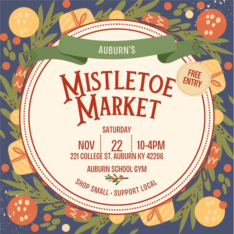 Auburn’s Mistletoe Market will be held from 10-4 p.m. in the Auburn School Gym. There is no admission charge. Many vendors and crafters will have items for sale.